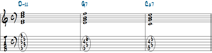 ここではDm7-G7-CMa7を例に各テンションのサウンドを聴いてみましょう。