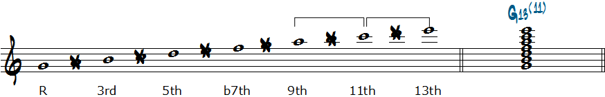 FMa7+9(G音)+#11(B音)+13(D音)=FMa13(#11)