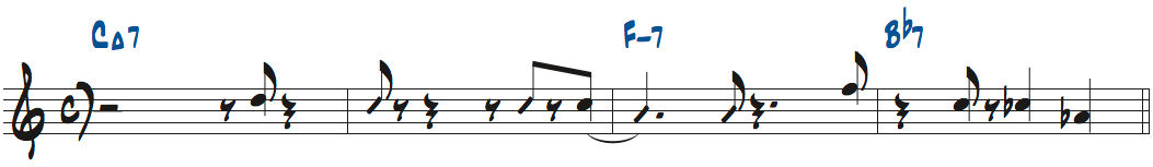 この譜例はリピートした後、Fm7には行かず2カッコのあるBbm7に進みます。